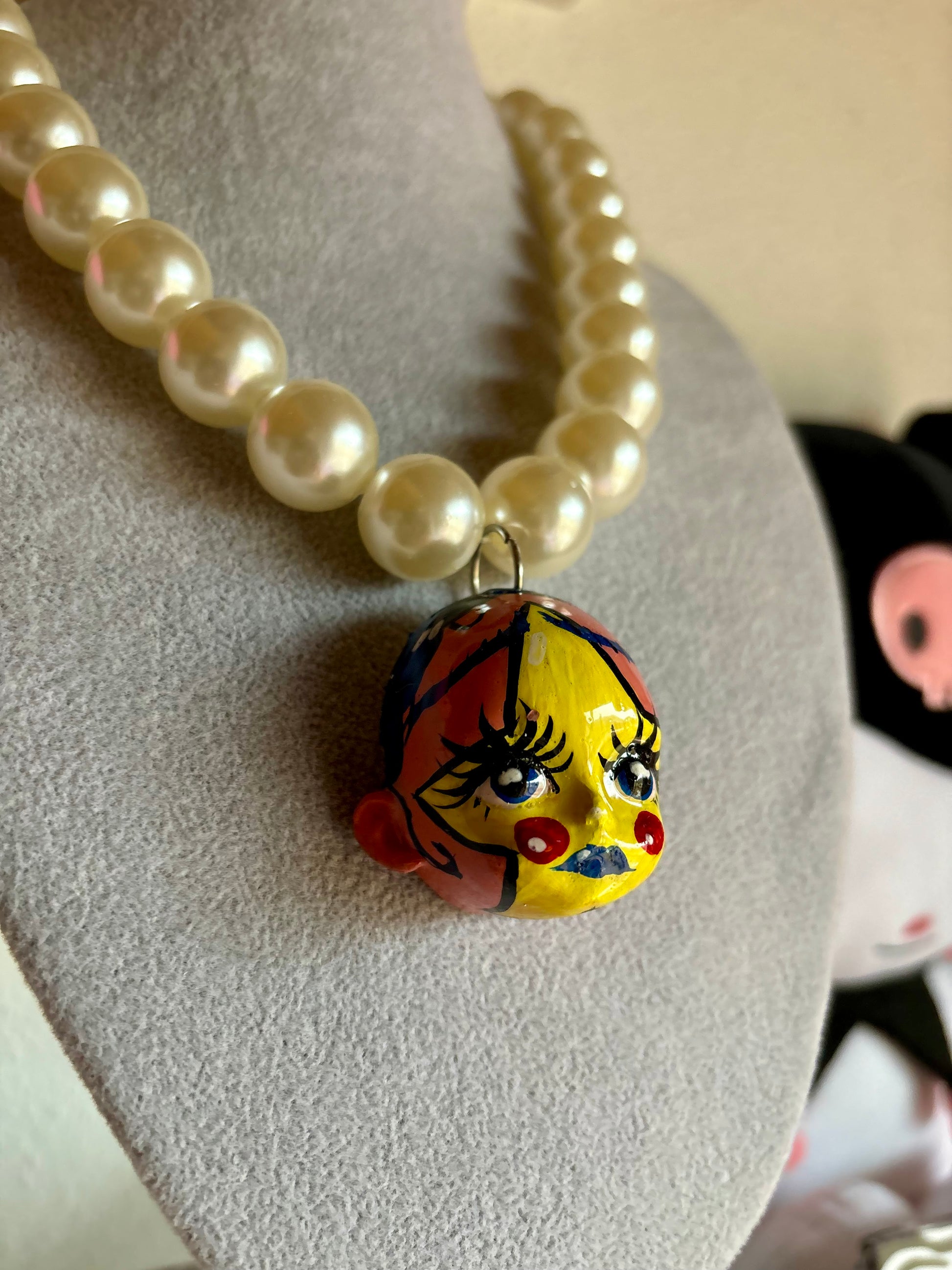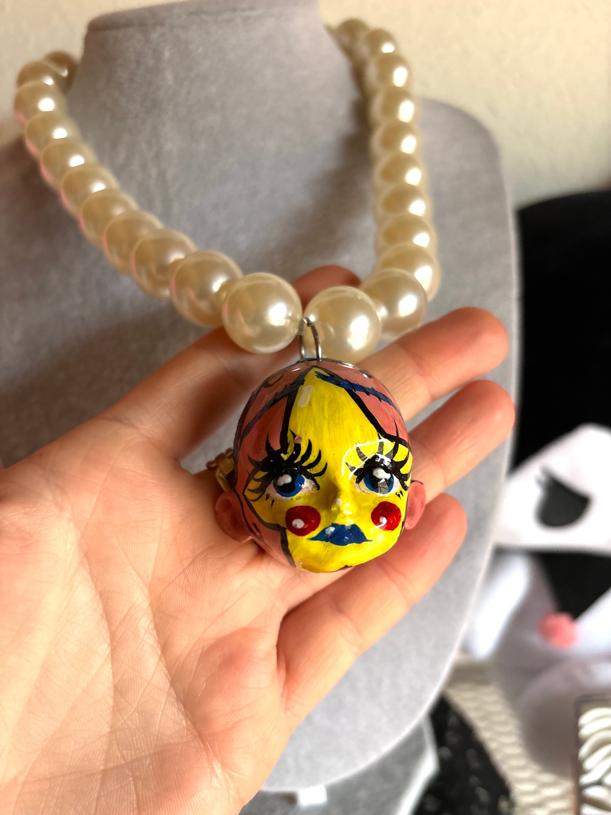 Cada carita es única y diferente cuidadosamente pintada y seleccionada los colores de sus perlas y cuentas por su estética y expresión, haciendo que cada collar sea irrepetible y especial. Perfectos para quienes buscan un accesorio artístico y exclusivo.